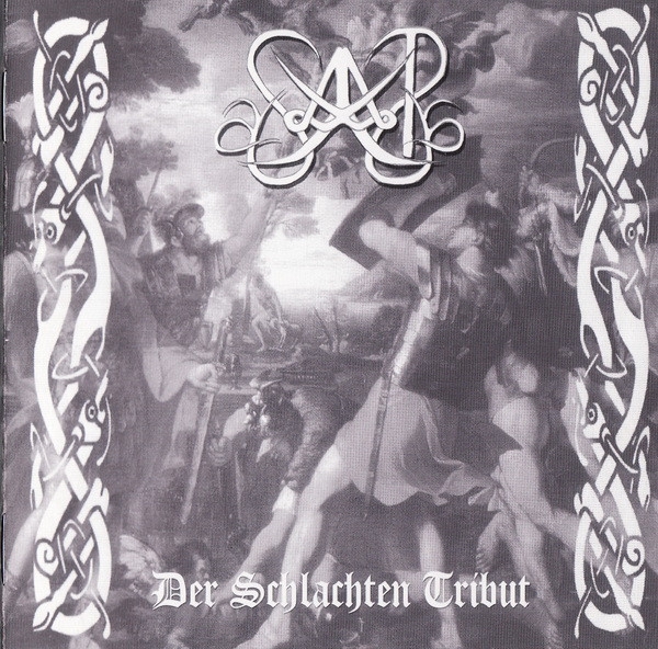 Der Schlachten Tribut erscheint mit 13 Tracks, Spielzeit ca. 59 Minuten, die den Hörer in den Bann vergangener Epochen zieht. Wie schon auf der ersten Veröffentlichung, verzaubert Die Saat den Hörer mit Flöten und Streichinstrumenten, abgestimmt mit Black Metal und Volkloreeinflüssen, sowie der Kreisch und Klargesang wurden stimmungsvoll umgesetzt. Review : Welch Überraschung, diese CD in Händen zu halten! Die Saat –„Der Schlachten Tribut“! Oder, wie das Backcover verspricht: „Thuringian Viking art“! Und da ich ursprünglich auch aus Thüringen (Sondershausen) stamme, widmete ich mich also diesem Album mit besonderer Aufmerksamkeit... mal hören, was die Landsleute so anstellen, quasi! Und ich wurde nicht enttäuscht! Während der 1. Track („Der Schlachten Tribut“) noch ganz gediegen (und vom Stil ein wenig an Subway to Sally erinnernd) und mit klarem, stolzem Gesang daherkommt, welcher einen in vergangene Zeiten versetzt, ist der 2.Song („Zu Ehren Wotans“) das volle Brett! Hammerharter Black Metal, mit growling vocals (die ihr erahnen dürft, da gerade hierzu leider KEINE Lyrics im Booklet stehen), untermalt von abwechslungsreichen Melodien im Background... ein absoluter Reißer! Der 3.Track („Der Ahnen Sage“) überrascht anfangs mit sehr klaren melodischen Gesangs- Tönen zwischen treibenden Drums und Gitarren, um dann in Scream-vocals über Kämpfe, Göttersagen, Runen, Midgard überzugehen... immer wieder unterbrochen von melodischen Einlagen und Spielereien ... und steigert sich zu einem herrlichen Finale, halb Viking art, halb BM... mein unbedingter Anspieltipp für euch! Und weiter geht es mit „Die Saat“ > virtuos begonnen geht es über in kompromisslosen, vorantreibenden (mit einem extrem geilen Drumbeat unterlegten) Sound, begleitet von 2 verschiedenen BM-growl-voices (eine tiefere, welche übrigens ein Ohrenschmaus ist, und eine höhere, „kreischigere“), die extrem gut miteinander harmonieren! Irgendwie erinnert mich ein kleiner Teil des Songs auch an den Stil der schwedischen Band Naglfar, eben nur in deutsch diesmal! Irgendwie kann ich von diesem Song nicht genug bekommen und muß ihn mehrmals hintereinander hören! Man könnte beim Titel des 5.Tracks („Elfentanz“) durchaus vermuten, dass es nun etwas ruhiger wird... aber weit gefehlt! Der melodiöse Anfang trügt! Es ist der nächste kick-ass-song... aber ich will nicht zuviel verraten ... hört Euch den Rest des Albums (welches übrigens mit einem wunderschönen Ancient- cover daherkommt) selbst an! Nur seien noch die Titel verraten, weil diese schon für sich selbst sprechen > „Und die Hoffnung ruht... „ (nun, dies ist allerdings wirklich ein ruhigeres Stück, pure Virtuosität), „Nordland“ (Heroentum pur..viking Metal in seiner reinsten und schönsten Form > unbedingt anhören! Ein Meisterstück!), „Krieg“, „Der Tod des Glaubens “, „Black Metal“ ( eine fantastische Hommage an den Black Metal... diesmal auf englisch), „Thuringia“ (ein fast episches Werk, bis auf das Wort „Thuringia“ in deutsch verfasst, welches auch in mir wieder die Sehnsucht nach der Thüringischen Heimat weckt ... und den Stolz sowieso) und „Der Scherben Ernte“ (es endet, wie es begann, mit fast minneartigem Gesang)! Dies ist wirklich das seit langem abwechslungsreichste Album, das ich gehört habe in der Vergangenheit... es wird ein relativ weites Spektrum bedient für all jene, die dem ancient touch des Viking Metal verfallen sind und stolze Lyrics mögen, die in einzigartigen und abwechslungsreichen Melodielinien gefangen sind... begleitet oder sich abwechselnd mit hammerharten, kompromisslosen Black Metal Beats! Dieses Album dürft ihr einfach nicht unbeachtet lassen! Review by Sheol-Mag Die Spielzeit der Lichtscheibe beträgt ca. 59 Minuten und ist erschienen mit farbigem 8 Seiten Cover . Die Lichtscheibe ist auf 1000 Einheiten Limitiert, es wird keine Nachpressung erfolgen.